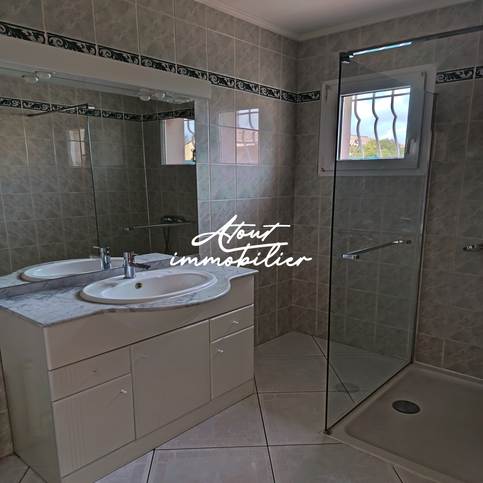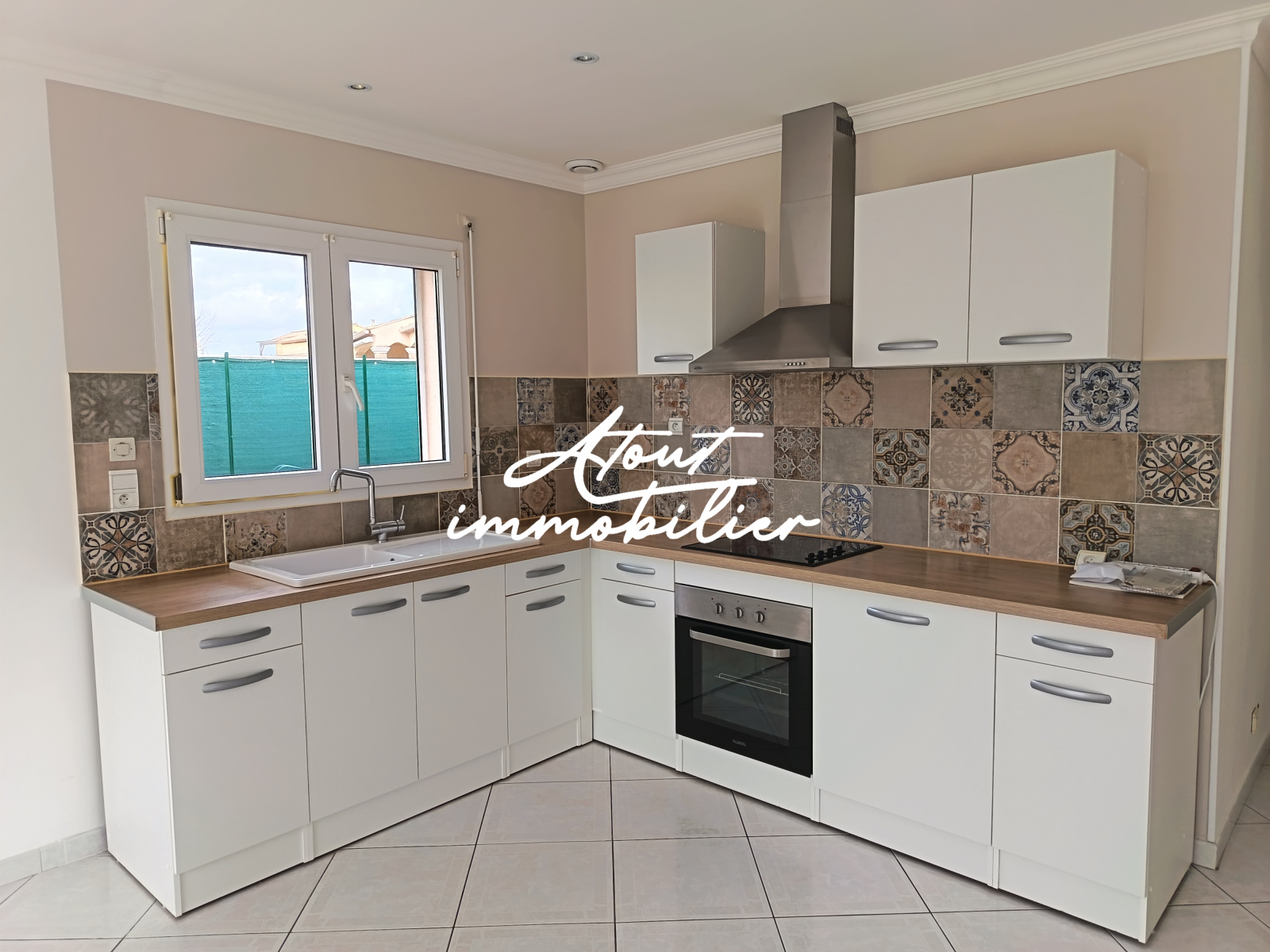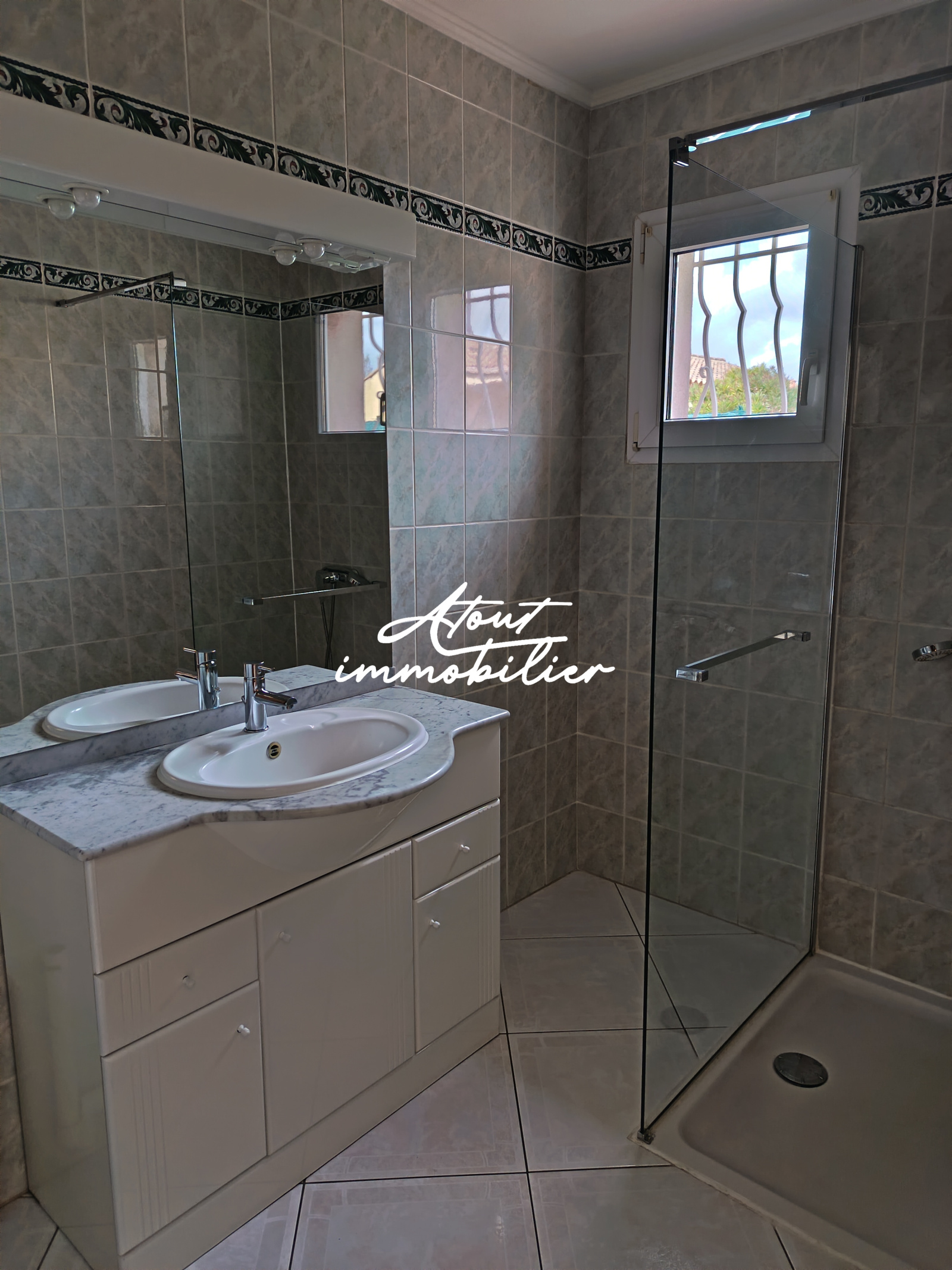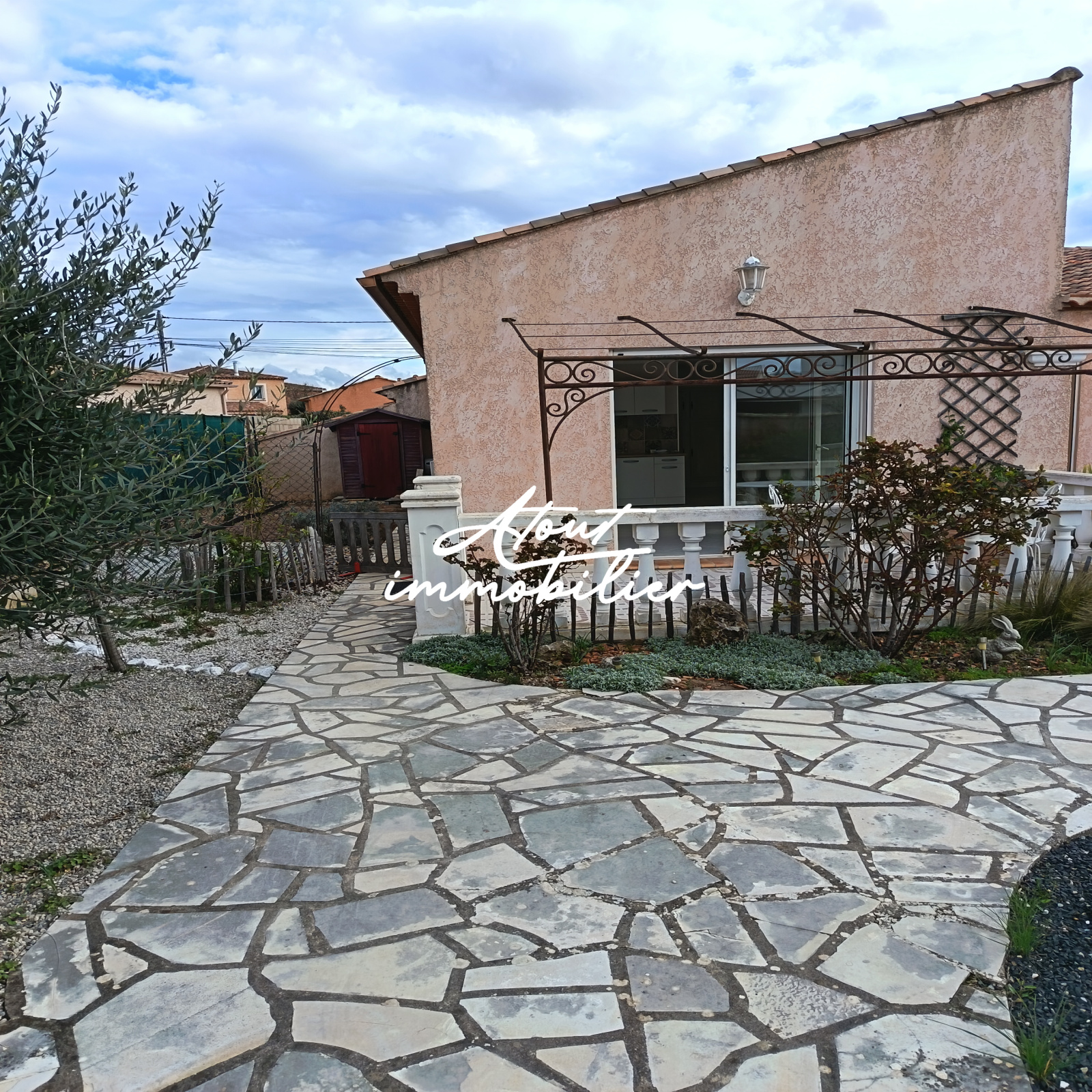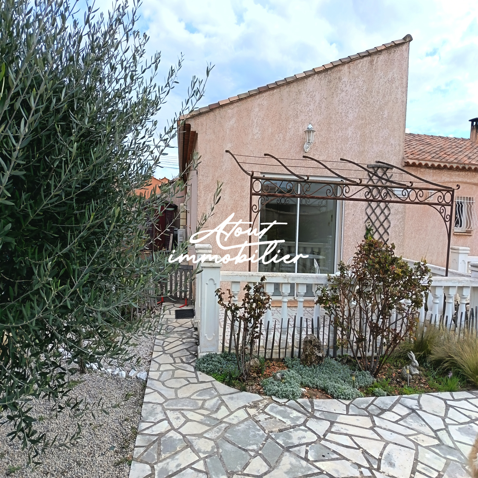 Sa composition est simple , la maison est mitoyenne de deux cotés offrant une cuisine neuve aménagée et équipée ouverte sur un séjour lumineux donnant sur une terrasse . Climatisation réversible .