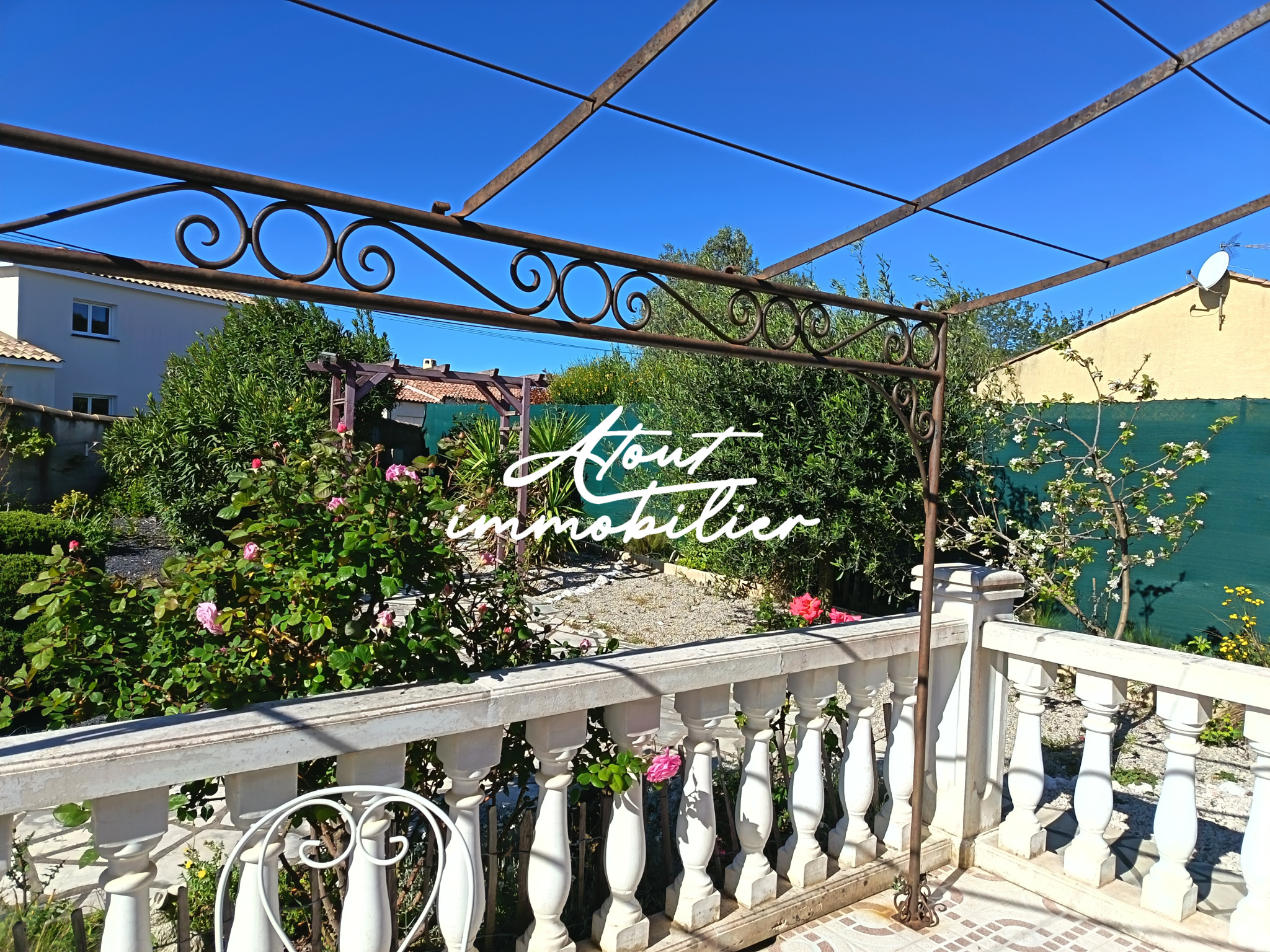 Sa composition est simple , la maison est mitoyenne de deux cotés offrant une cuisine neuve aménagée et équipée ouverte sur un séjour lumineux donnant sur une terrasse . Climatisation réversible .